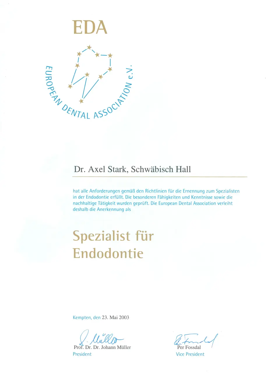 | Endodontie | Spezialist für Endodontie DGET Spezialist für Endodontie EDA |